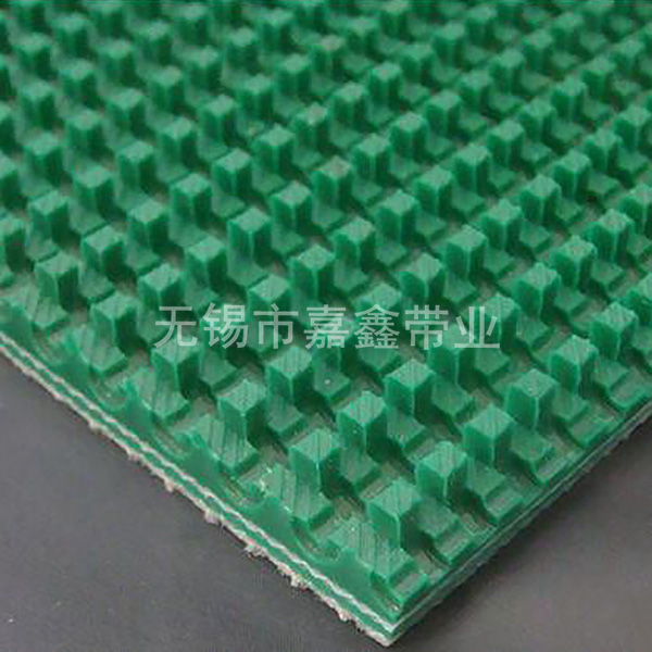 3、花紋pvc輸送帶適用于傾角0度~45度散裝,袋裝物料輸送,紡織物料下滑,提高輸送能力。